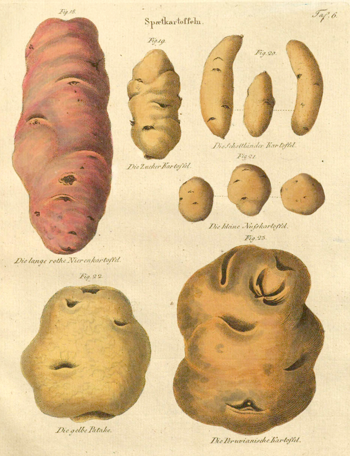 Der „Kartoffelpfarrer“ Carl Wilhelm Ernst Putsche brachte 1819 das erste agrarwissenschaftliche Werk über Kartoffeln heraus. Es enthielt farbige Illustrationen der damals beliebtesten Sorten.