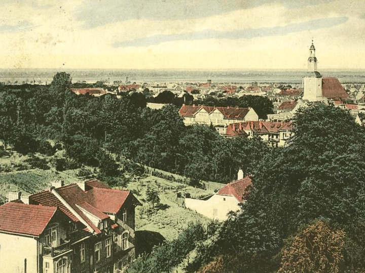 An den Wriezener Hanglagen wurde im Mittelalter bereits Wein angebaut, diese Böden galten anfangs auch als beste Lagen für Kartoffeln, im Hintergrund Blick ins Oderbruch (Postkartenmotiv, 1916)